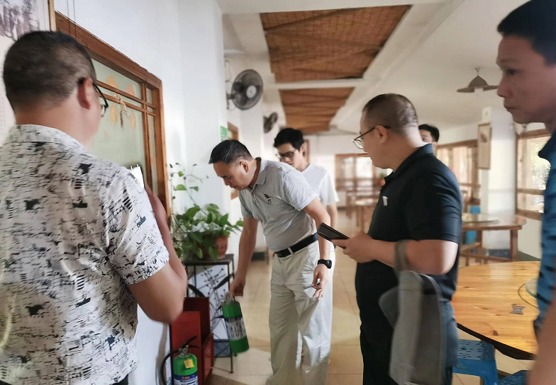 在潘渡镇的福建玶丰长生生态农业有限公司旗下的贵安开心农场,检查组和农场负责人一起座谈,详细了解农场安全生产情况,并重点检查营业场所、厨房、民宿的消防安全设施,排查风险隐患。