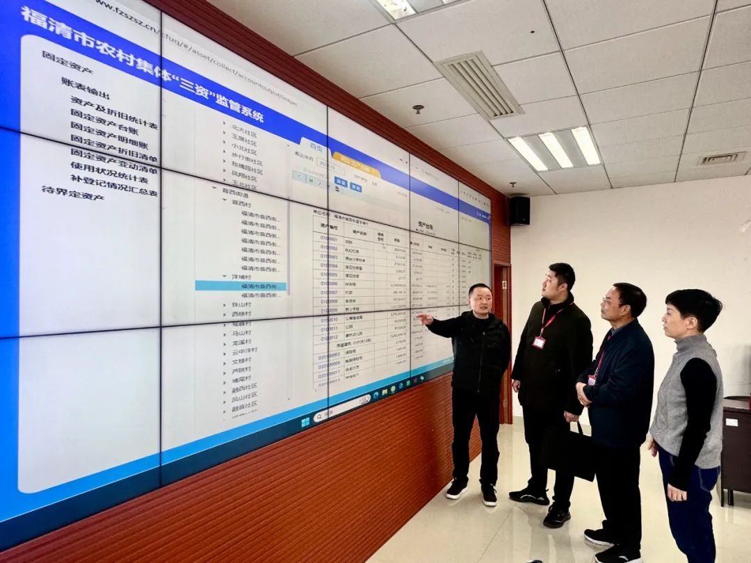 福清市纪检监察干部通过“三资”数字管理系统查看资产台账有关情况。图源:清风福州