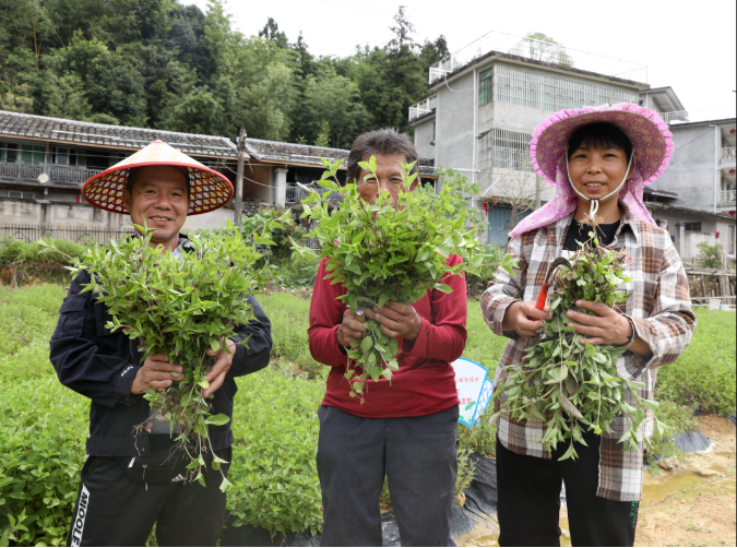 “仙人草一年种植、多年获益,收获时只收割叶和梗,保留根系,第二年可自己抽芽长叶。今年,我们打算部分打包成盆栽出售。”村党支部书记何寿模介绍,仙人草又名仙草、凉粉草,是制作凉茶、仙草蜜的重要原料,形似薄荷,一亩地可种植四五千株,比种水稻的收益要高。