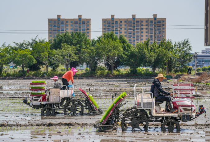 从今年全市春季农业生产现场会上可以发现,科技与农业的深度融合,重塑着各大生产环节。在利丰农业专业合作社基地的自动育秧播种线上,摆盘、撒土、浇水、播种、盖土,一个个秧盘快速完成;工厂化育秧大棚内,“甬优4949”整齐排列,一茬茬新绿挂着水珠,迸发无限生机。