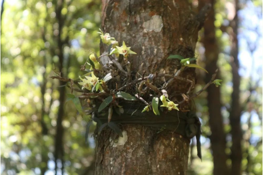 “石斛被誉为‘植物黄金’,它开出的石斛花更为珍贵,干花市场售价每公斤5000元至6000元。”侯明香说,这里的石斛都是人工育苗而成,在组培室培育半年左右,即可绑扎在树木表面开始自由生长,待到石斛的根系长出来后,还可以进行分株培育。