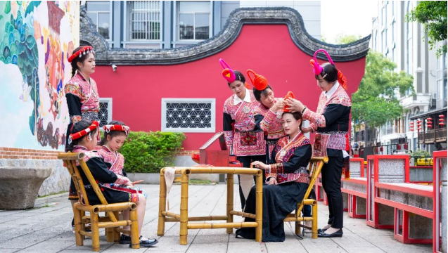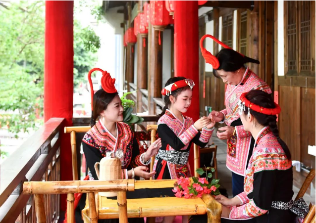 “五一”假期,罗源县松山镇八井畲族村因凤凰装成为新晋网红打卡地,其独具韵味的畲族文化体验让八方游客流连忘返。