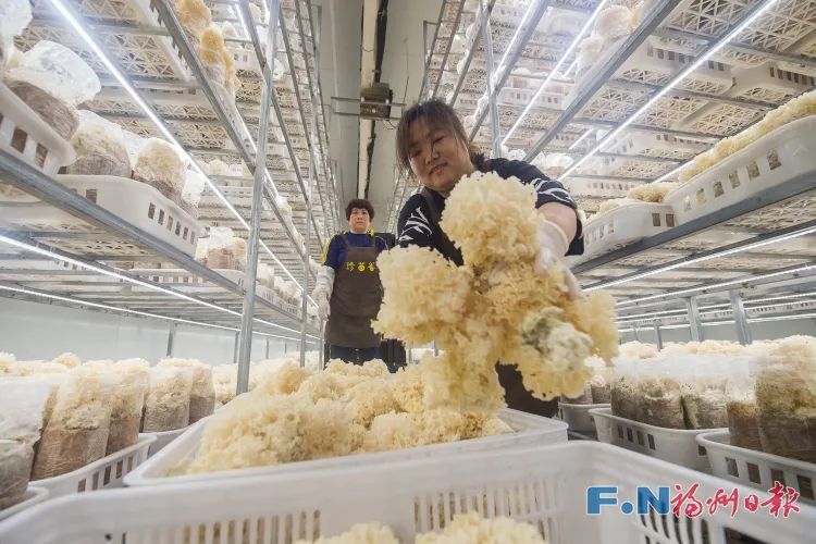 罗源起步镇菇农正在菇棚里收菇。郑帅 摄