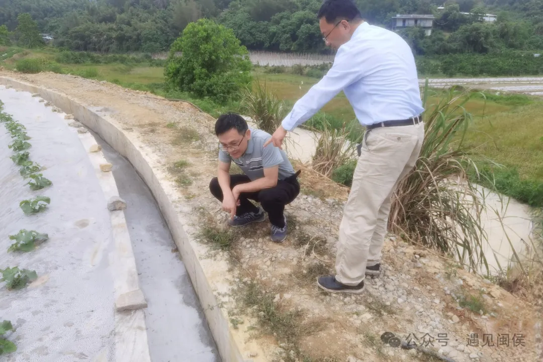 闽侯县农业农村局工作人员在检查高标准农田工程设施建设质量。闽侯县农业农村局供图