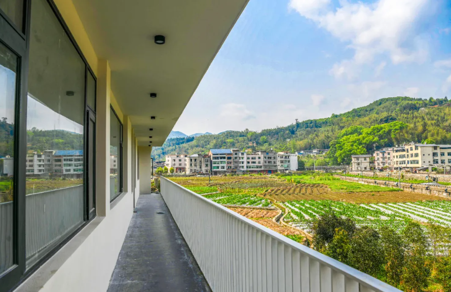 走进院落内,学校的影子依稀可见。民营企业家不只是将它打造成民宿,还在山头上种上了果树。让人想起海拔1000多米的福安南岩村,云蒸雾腾的村景浮现眼帘;又让人想起政和县稠岭村,它享有“天村”美誉。