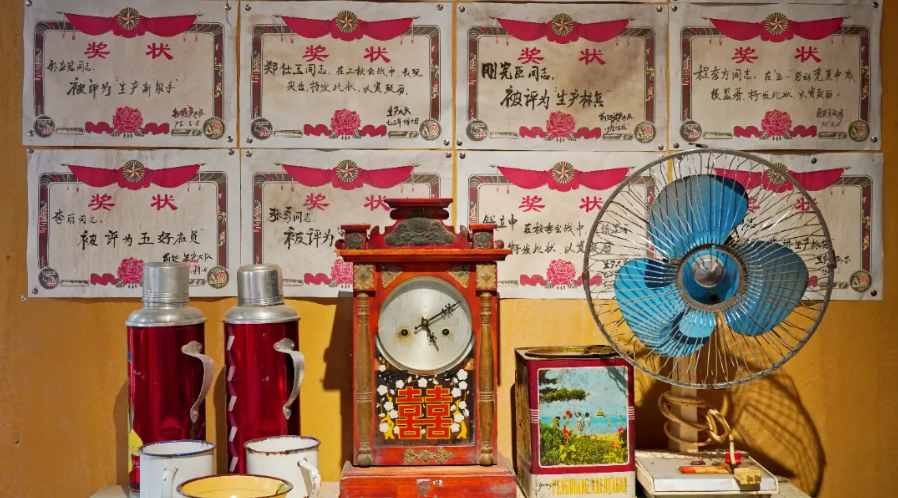 在“某年某月”的知青空间,陈列着许多上个世纪五六十年代的旧物品,还有那个年代的照片馆、理发馆,老式的音响,墙上那些依旧保留下来的标语,仿佛让人穿越时光,回到了那个岁月。