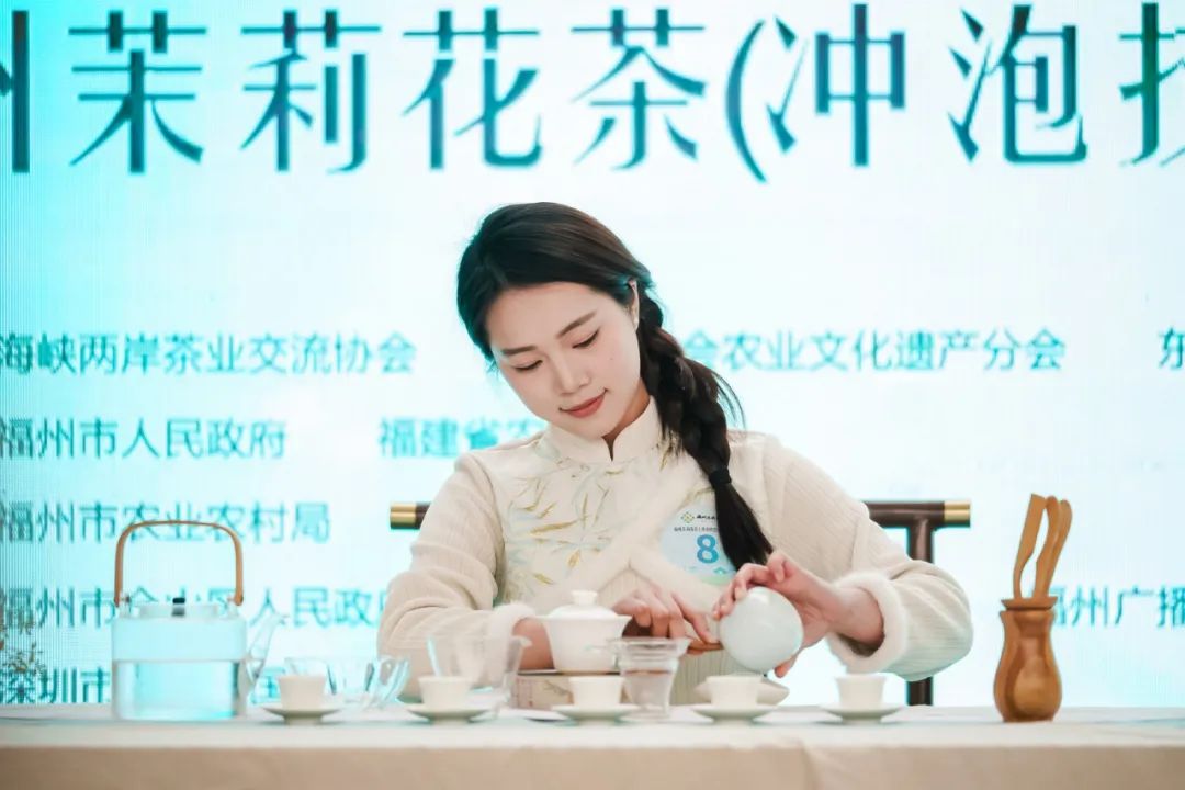 在茶艺大赛决赛中,来自福建的众多茉莉花茶企业的11位茶艺师代表,以其精湛的冲泡技艺和深厚的茶艺底蕴,为观众带来了一场视觉与味觉的双重盛宴。