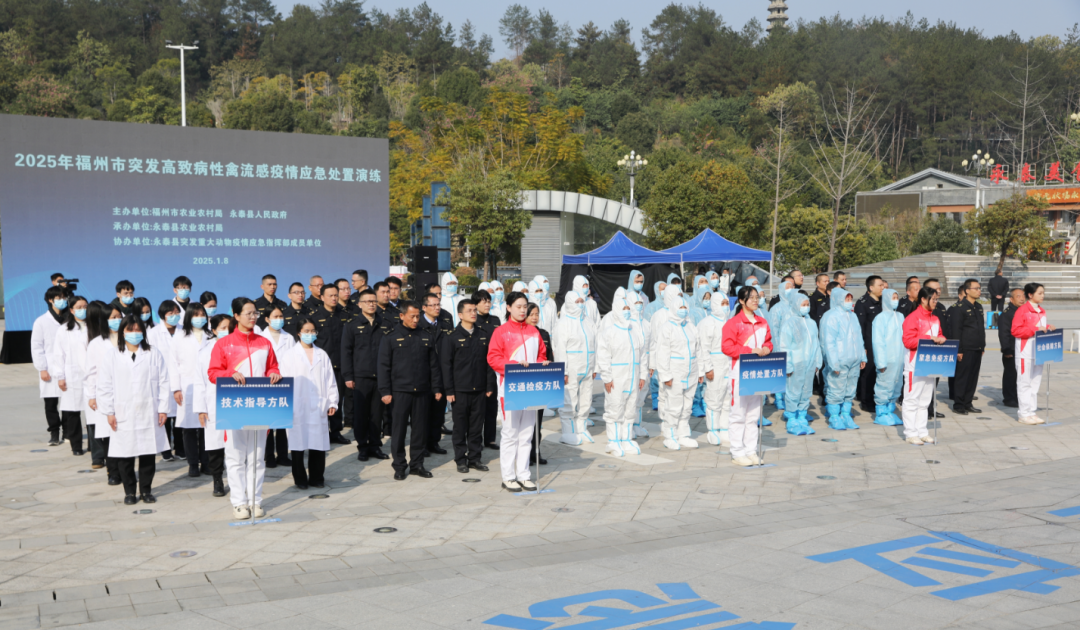 为进一步提升全市重大动物疫情应急处置能力和疫病防控水平,确保及时、高效、规范、有序、依法处置疫情,1月8日,2025年福州市突发高致病性禽流感疫情应急处置演练在永泰县举办。