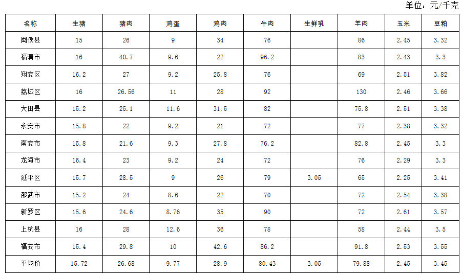 福建省2025年第16周畜产品及饲料集市价格周报