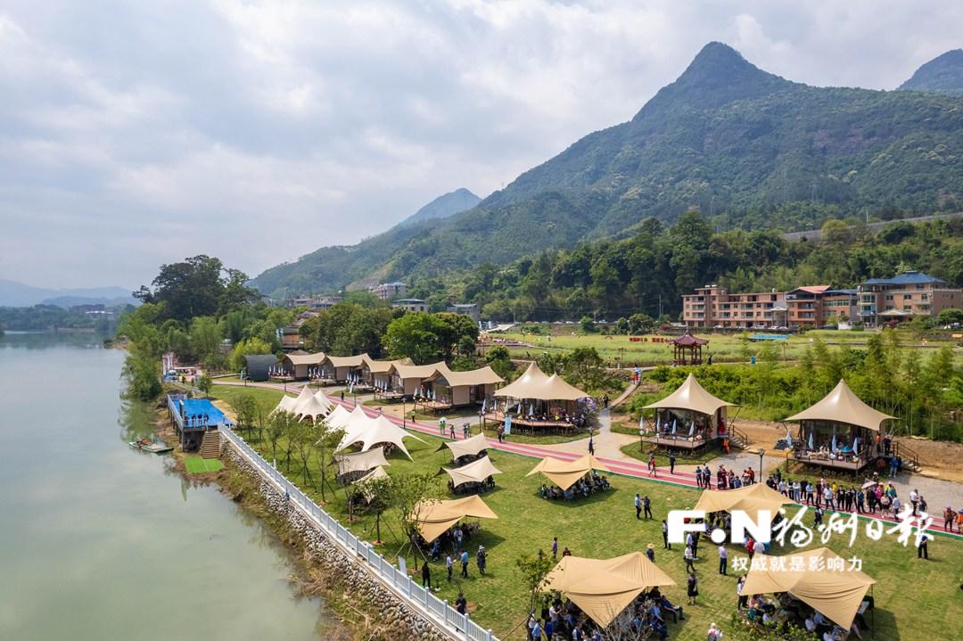 端午假期已至,梧桐镇坵演村房家泰谷里露营地内欢声笑语一片,近处的水田、古榕与远处的古民居遥相呼应,巷陌乡间花树掩映,一幅生态美、产业旺、百姓富的和美乡村画卷尽收眼底。