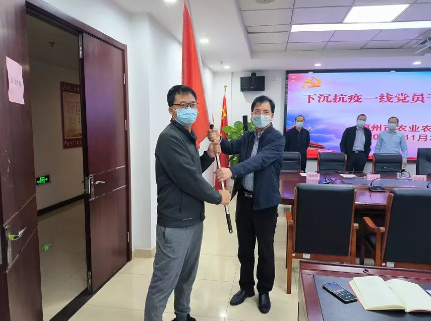 为落实党中央和省、市委疫情防控决策部署,进一步号召广大党员干部众志成城,共克时艰,坚决打赢疫情防控阻击战歼灭战,让党旗高高飘扬在防疫前线。11月3日下午,福州市农业农村局隆重举行下沉闽侯县抗疫党员干部先锋队授旗出征仪式,派出75名党员干部支援闽侯县祥谦镇疫情防控工作,用实际行动彰显党员本色和“三农”干部的使命担当。局党组书记、局长林健主持出征仪式并讲话,局领导班子,机关各处室、各直属单位下沉抗疫一线党员干部参加仪式。